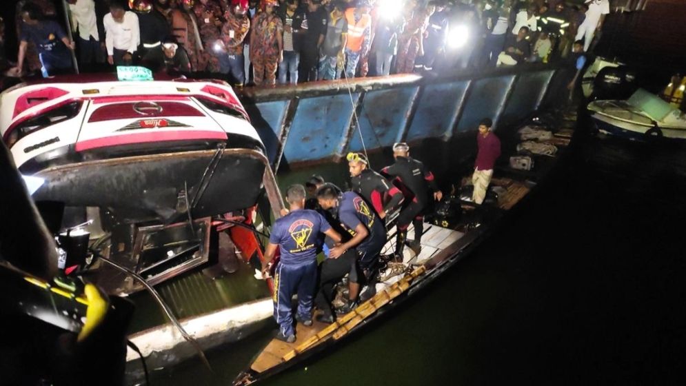 উল্লেখ্য, বুধবার বিকেল সাড়ে ৫টার দিকে সৌহার্দ্য পরিবহনের একটি যাত্রীবাহী বাস ৩ নম্বর ফেরিঘাট এলাকায় পন্টুনে ওঠার সময় নিয়ন্ত্রণ হারিয়ে প্রায় ৫০ জন যাত্রী নিয়ে পদ্মা নদীতে পড়ে যায়। মুহূর্তের মধ্যেই বাসটি গভীর পানিতে তলিয়ে গেলে এলাকায় শোকের ছায়া নেমে আসে। দুর্ঘটনার পর থেকে স্থানীয় জনতা ও প্রশাসনের সহায়তায় উদ্ধার তৎপরতা শুরু হয়। এখন পর্যন্ত ১৬ জনের মরদেহ উদ্ধারের পাশাপাশি একজনকে জীবিত উদ্ধার করা সম্ভব হয়েছে, তবে নিখোঁজদের সন্ধানে এখনো অভিযান চলমান রয়েছে।
