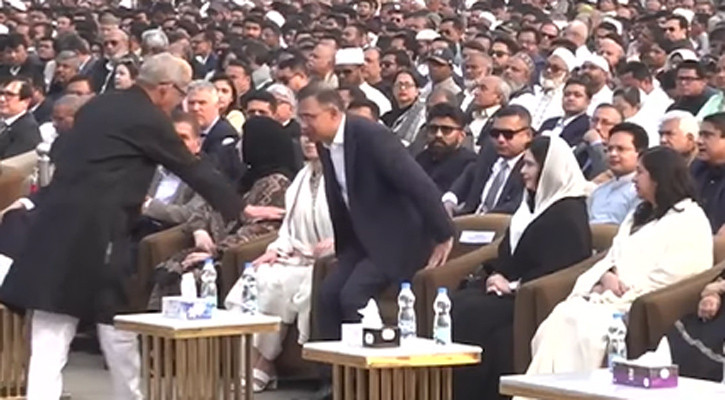 রাজধানীর সংসদ ভবনের দক্ষিণ প্লাজায় সাবেক প্রধানমন্ত্রী বেগম খালেদা জিয়ার স্মরণে আয়োজিত নাগরিক শোকসভা চলছিল। সেসময় দলের মহাসচিব মির্জা ফখরুল ইসলাম আলমগীর উপস্থিত হলে তাকে দেখেই আসন ছেড়ে দাঁড়িয়ে যান বিএনপির চেয়ারম্যান তারেক রহমান। করেন করমর্দন ও কুশল বিনিময়।